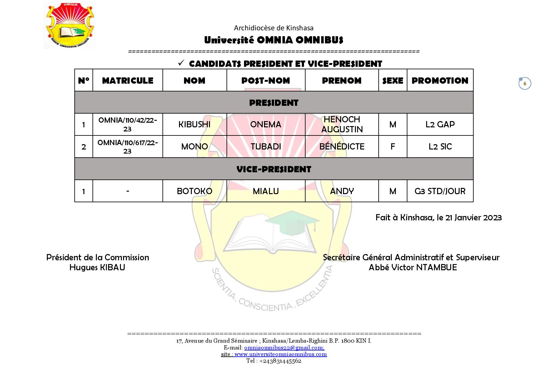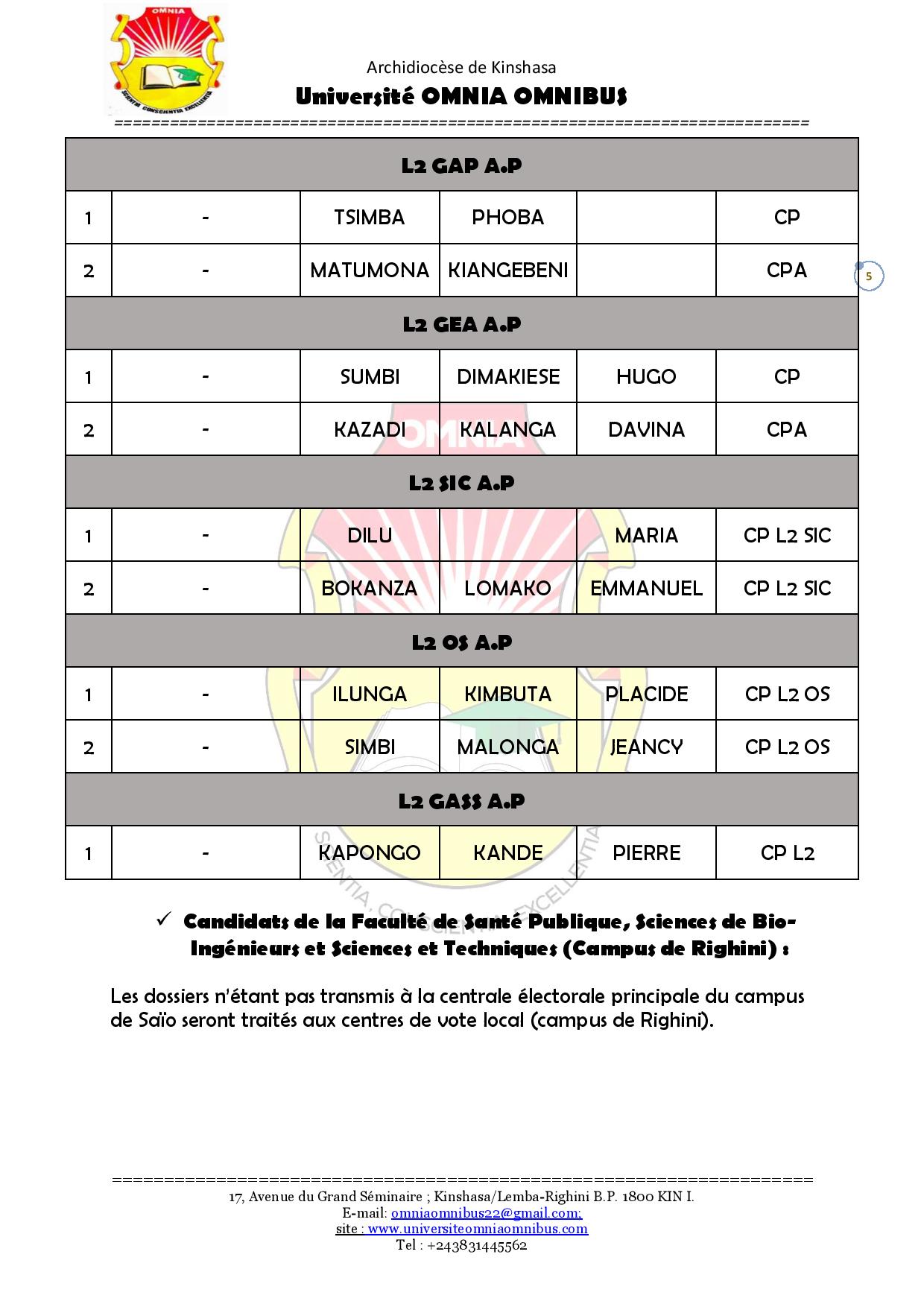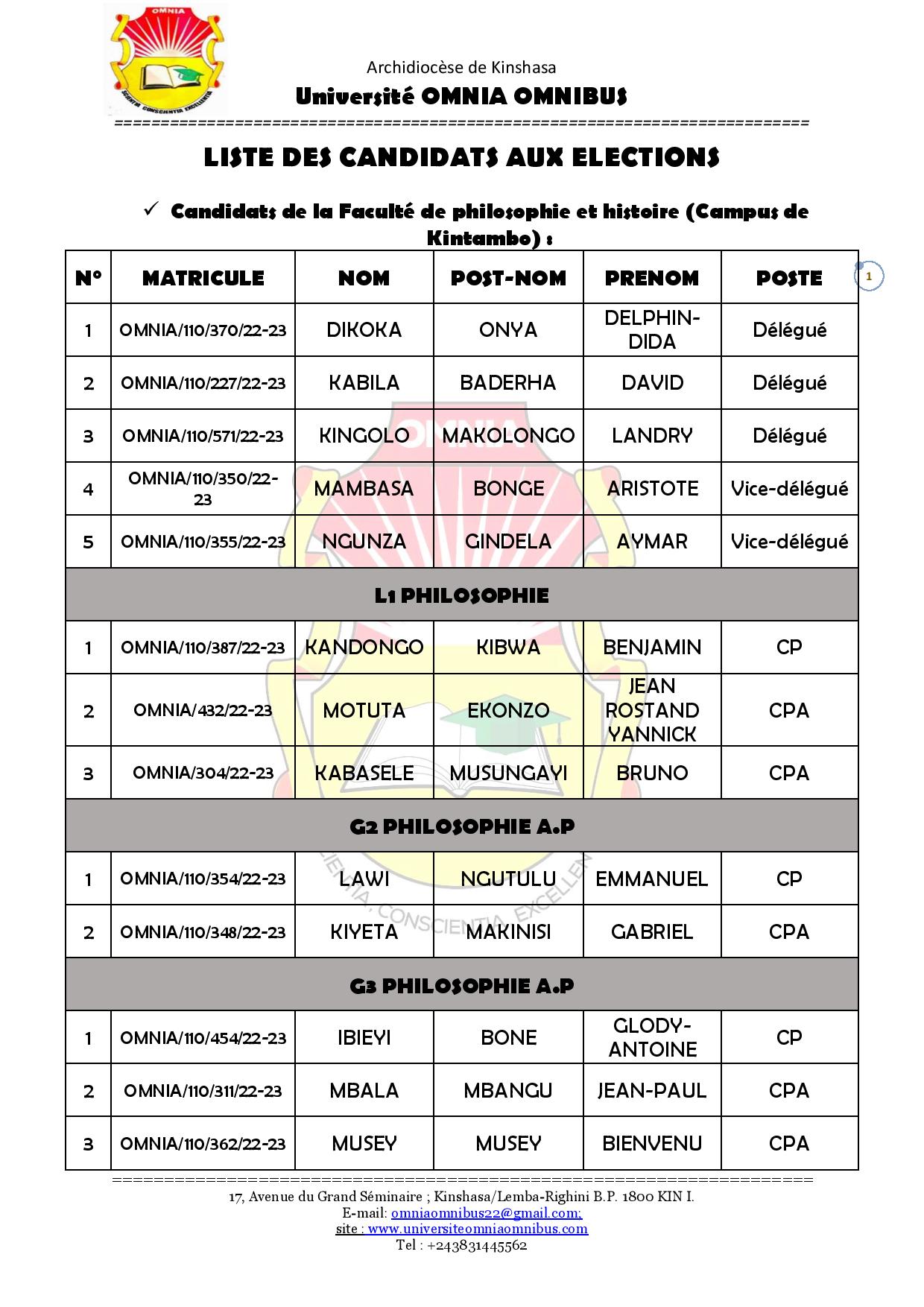 - Samedi 21/01: Affichage des listes de candidats et début de propagande;